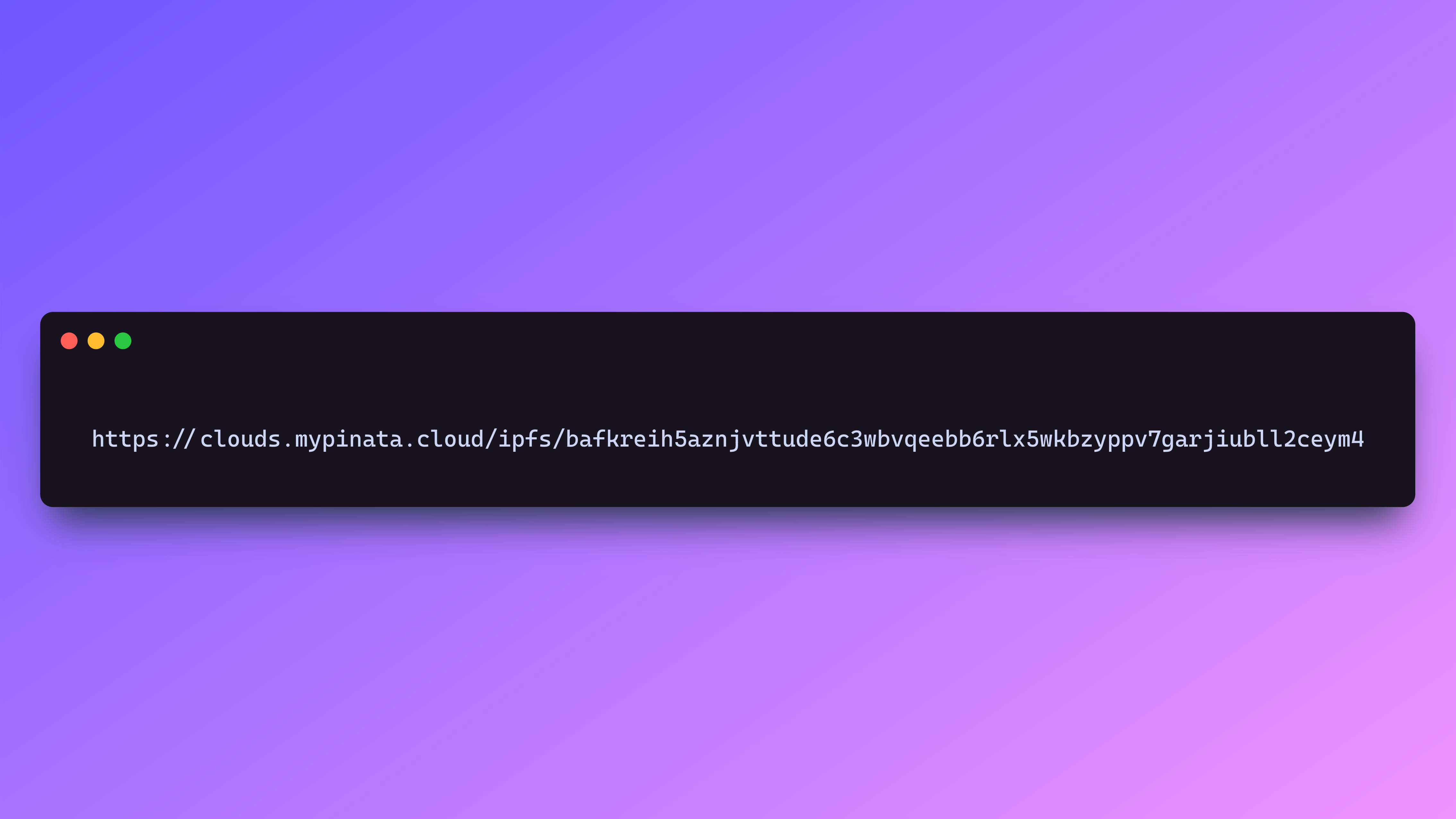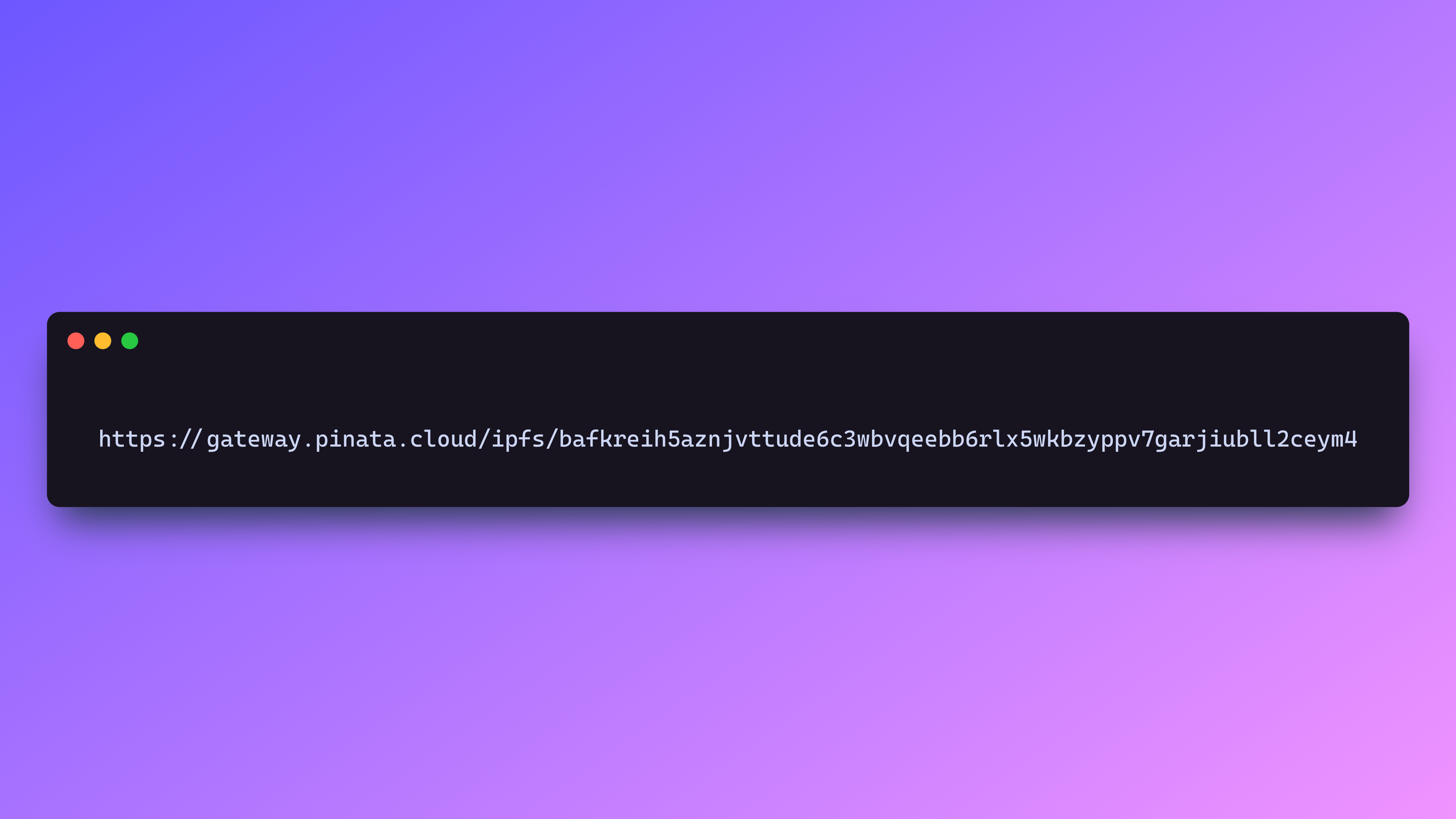 ipfs://{CID} or if you don’t have an IPFS node, you can use an IPFS Gateway like https://ipfs.io/ipfs/{CID}. This simple concept of CIDs give them several super powers.